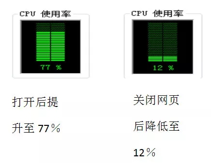 如果訪問了這些被攻擊的網站,CPU利用率會立即提高,測試結果如下。