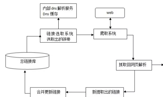 下圖為spider抓取系統的基本框架圖,其中包括鏈接存儲系統、鏈接選取系統、dns解析服務系統、抓取調度系統、網頁分析系統、鏈接提取系統、鏈接分析系統、網頁存儲系統。Baiduspider即是通過這種系統的通力合作完成對互聯網頁面的抓取工作。